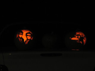 BT's Blue Brothers pumpkin and my Swiper the Fox pumpkin
